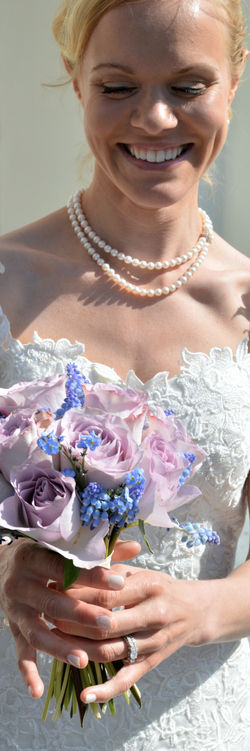 Solen strålade denna varma majdag. Brudparet var mer än stiliga och deras kärlek och trygghet i varandra lyste. Rosor, pärlhyasint och färgätmigej, en brudtårta att dö för och en klänning som man bara ser i sagor. Vänner och familj i folkdräkt som bjöd på sång och musik och överaskningar. Det var en magisk dag. En dag att minnas med ett lika stort leende som bruden och brudgummen bjöd på under hela dagen!